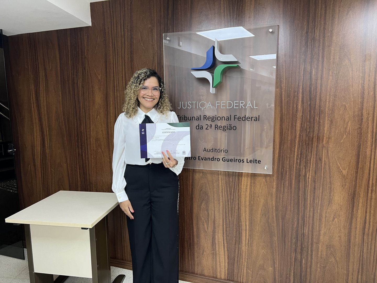 01/08/2024 - Aluna recebe certificado de conclusão de curso em cerimônia na sede do TRF2>